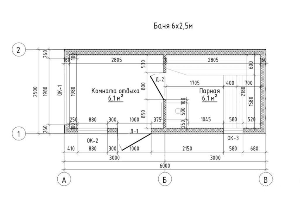 Толщина внутреннеё стены: 180 мм